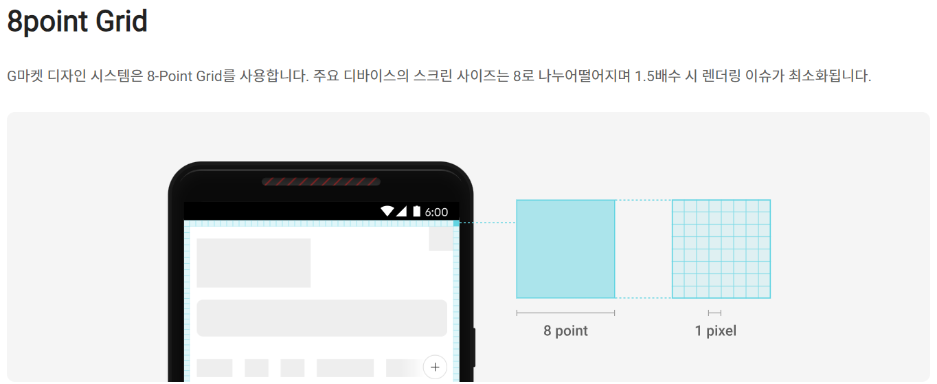 해당 예시인 G마켓의 디자인 시스템에도 8point grid에 대해 작성이 되어있고, 이후 8이 아닌 4pt 그리드 시스템에 대한 향후 방향성에 대한 이야기도 나온다.