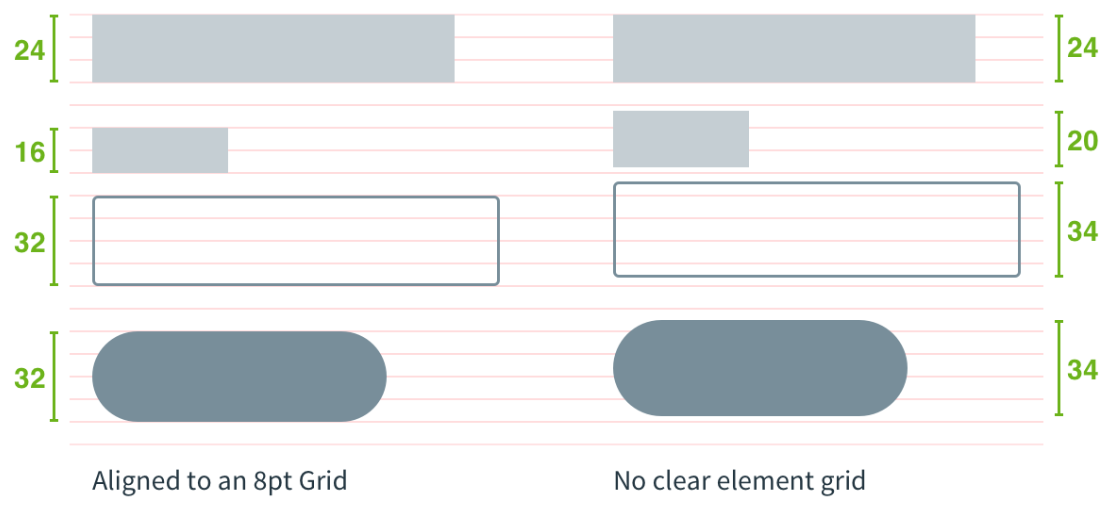 그 이유는 최근 디자인 시스템의 경향과 조금 맞지 않는다는 이유 때문이다. 그 때 나오는 것이 바로 8pt 그리드 시스템이다.