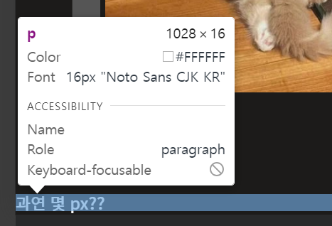 예시 ) 스타일을 지정하지 않은 p태그에 기본적으로 16px이 들어간 것을 확인할 수 있다.