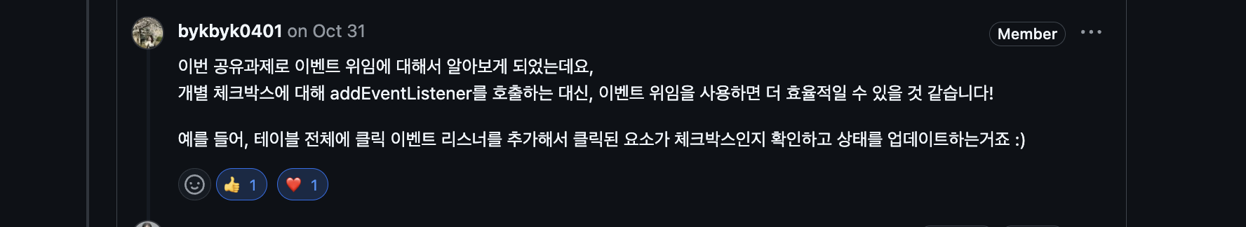 이벤트 위임 중, 버블링을 사용하여 모든 체크 박스에 이벤트를 달아줄 필요없이 테이블 전체에 걸어주게 되면