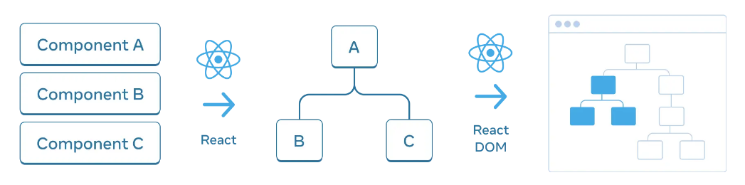 렌더 트리: 브라우저가 HTML(DOM)과 CSS(CSSOM)를 모델링하기 위해 사용하는 구조입니다. React는 컴포넌트로부터 UI 트리를 생성하여 DOM을 렌더링합니다.